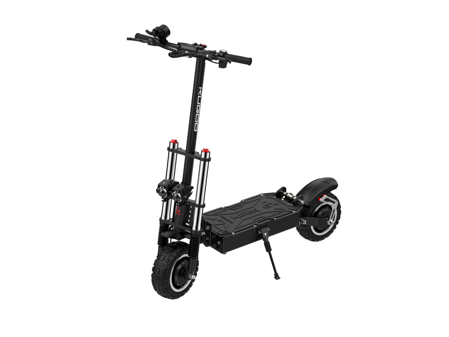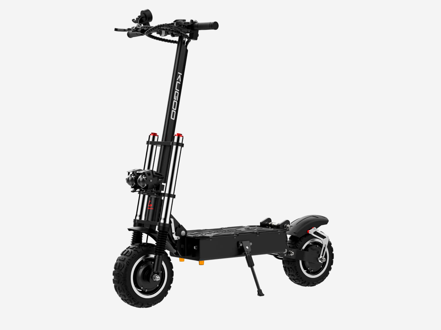 KUGOO G-booster – топовый электросамокат компании KUGOO. Обновленная модель 2020 года, с фарой, крылом и новым АКБ. Это настоящий гоночный болид в мире электрических самокатов, способный развить скорость до 60 км/ч! Общая мощность двигателей – 2,4 кВт позволит пользователю практически мгновенно разогнать машину с места до наибольшей скорости, подниматься в гору и преодолевать препятствия. В электросамокате KUGOO G-booster установлена уникальная АКБ, выдающая 48v и имеющая емкость в 23.0Ah (процесс зарядки аккумулятора длится 8 ч.). Но зато с такой батарей можно спокойно ездить по городу, ведь запас хода составляет до 70 километров.