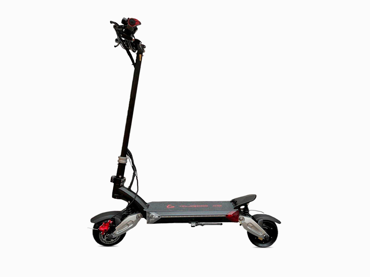 Электросамокат KUGOO X8 – мощный, лёгкий и с большим запасом хода. KUGOO X8 способен разгоняться до 50 км/ч за короткое время. Колеса самокат КУГО Х8 небольшие по диаметру, клиренс всего 11 сантиметра. Весьма низкая и даже спортивная посадка! Обратите внимание на специальную ручку для транспортировки – складываете КУГО Х8, надежно фиксируете и катите за эту ручку. Можно упомянуть рекуперативный тормоз и антискользящее покрытие на большой деке.